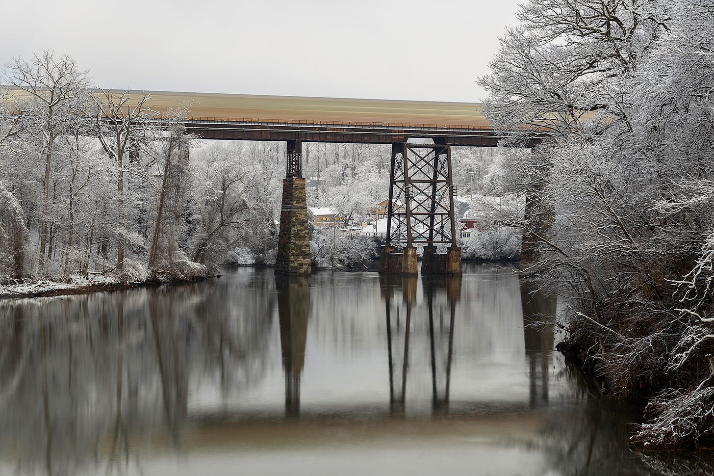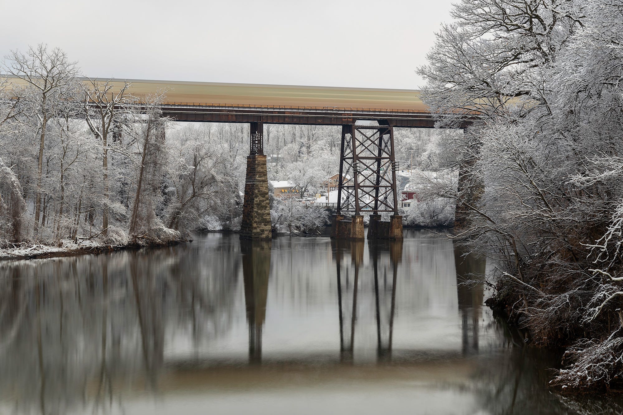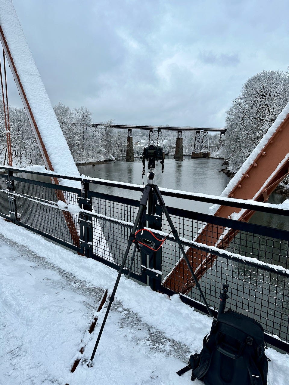 It’s a photo that I made on a walking bridge in Catskill after the first snow of 2022. I had my camera ready on a tripod, setup to take an image very similar to one I did after the first snow in the winter of 2021. With the camera and my ND (natural density) filters in place all I had to do was put my gloves back on and wait for the freight train to pass on the bridge in front of me - I don’t know when they come, sometimes I wait 20 minutes and other time, hours. A photographer awaits, like a fisherman does.