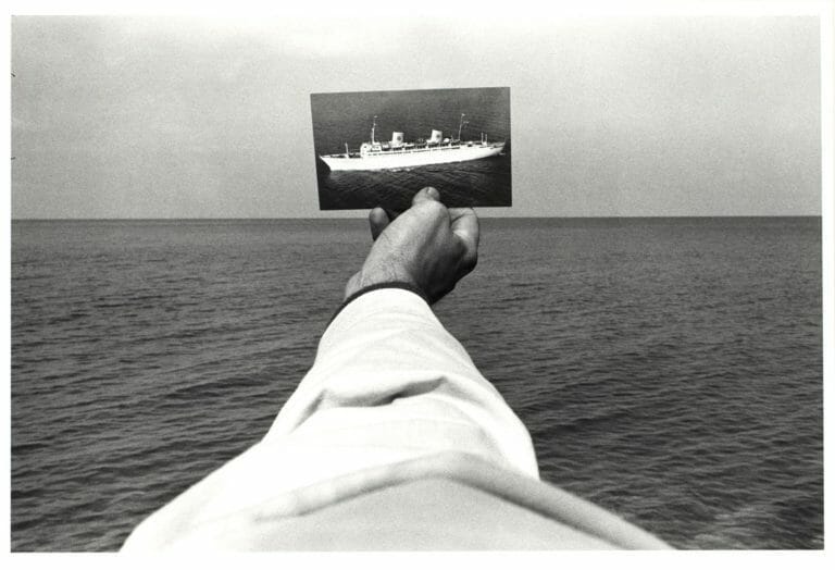 In this photo the artist is holding a photograph that he found taken by an anonymous photographer. A photo within a photo, of a subject (the ship) that could have been there - but is actually not. Josephson’s work often challenges our view of what is or can be shown in a photograph, what is real and what is made up or manipulated, and through that practice Josephson expand what we think of about photographs and the medium of photography. There are also layers of time in this work, as the artist is holding an undated but clearly older photograph over a timeless ocean and to top it all it looks like the artist himself is cruising on a ship.